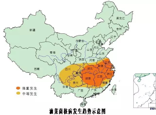 1.重發區:以長江流域秋播油菜產區湖北、湖南、安徽、江蘇、江西為菌核病重發區,注意重點防控。